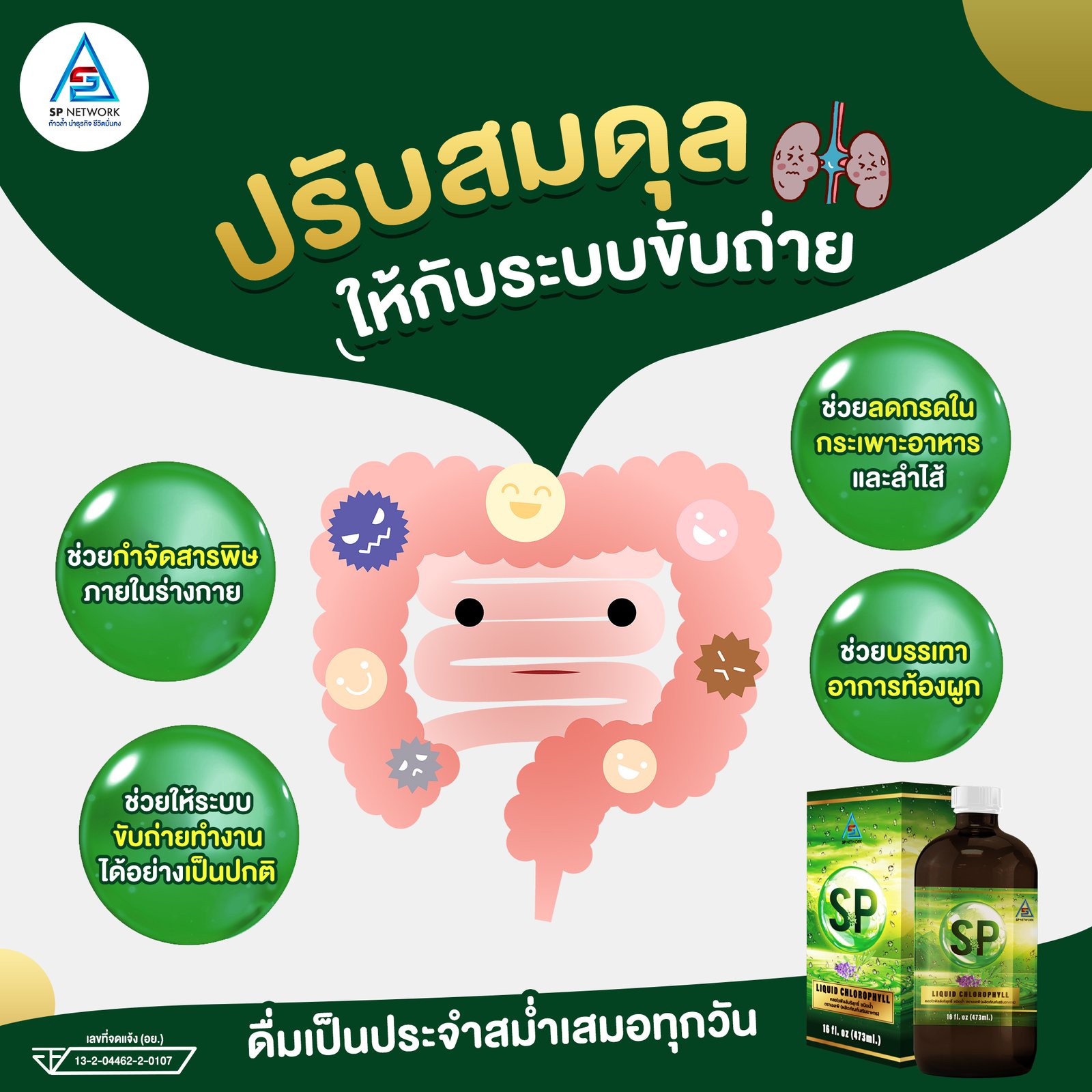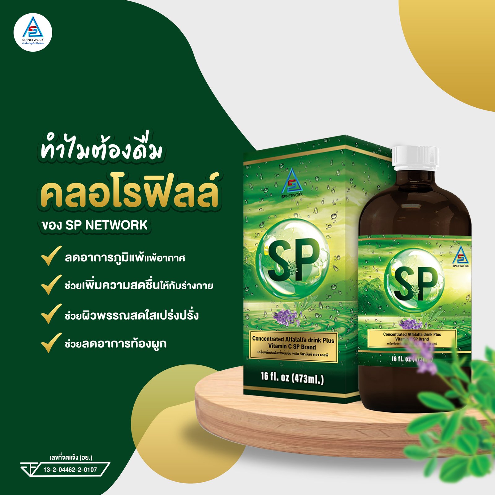เอสพี คลอโลฟิลล์ คลอโรฟิลล์บริสุทธิ์ ชนิดน้ำ พลัสวิตามินซี